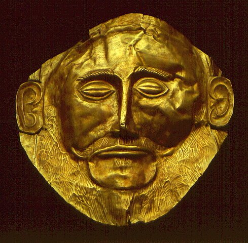 He La llamada «Máscara de Agamenón». Descubierta por Heinrich Schliemann en 1876 en Micenas. Se desconoce si representa a un indiv