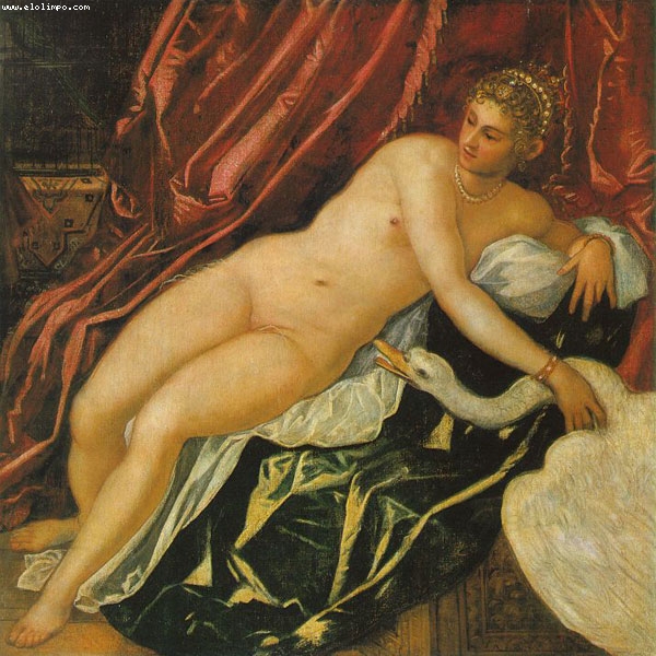 Sobre la posesión por Zeus en forma de Cisne, hay varias versiones: en una se cuenta que Helena era realmente hija de Zeus y Némesis. Cuando Némesis se transformó en oca para escapar de Zeus, éste se metamorfoseó en Cisne y la violó, engendrando en ella un huevo, que Némesis abandona. Un pastor lo encuentra y lo entrega a Leda, que lo guarda en un cofre hasta que de aquél nace la hermosa Helena, que Leda adopta.Leda y el Cisne